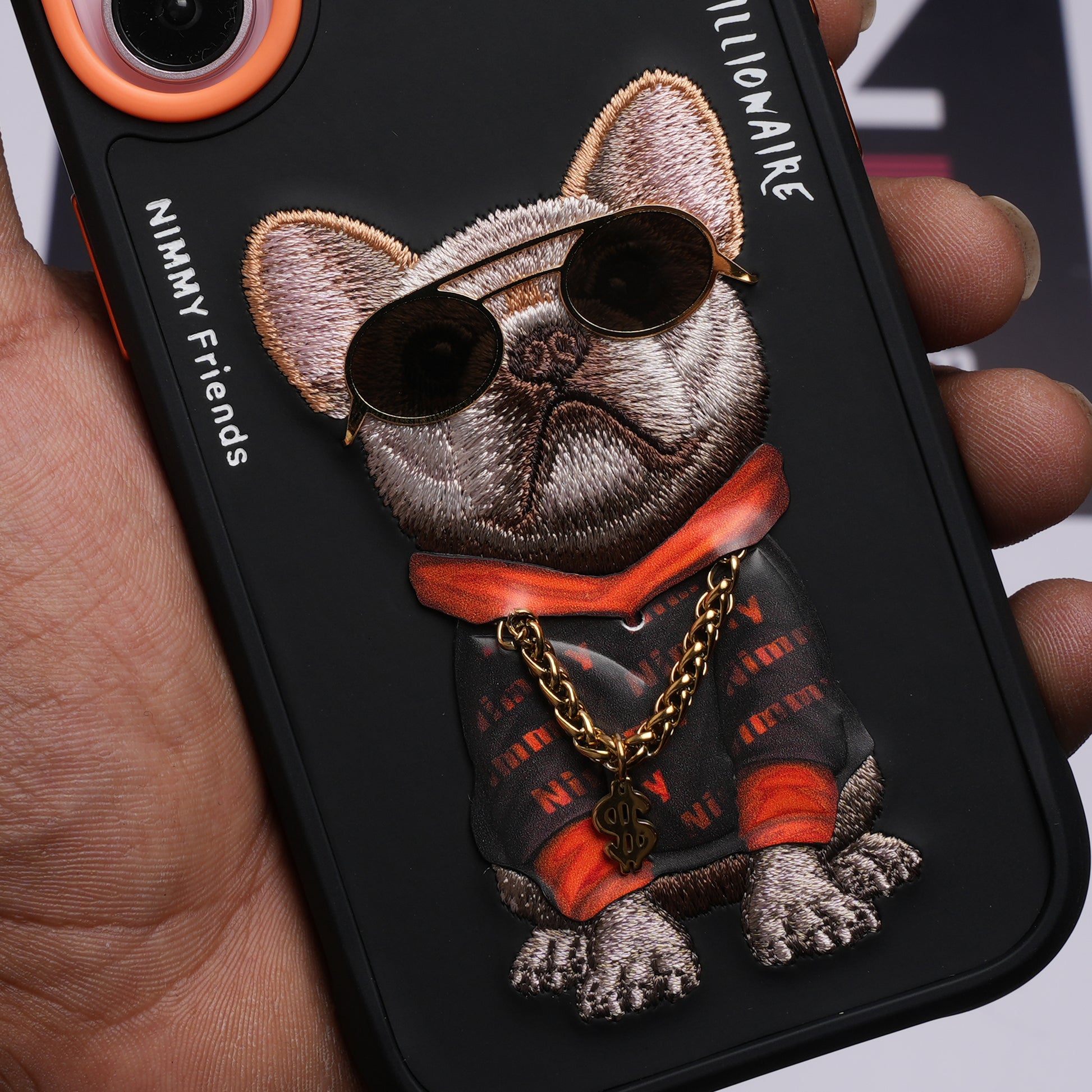 Precisely crafted details, such as the neck chain and sunglasses, emphasise the product's unique character, making it an excellent choice for lovers of stylish and unusual accessories. These three-dimensional details add a unique charm to the case, transforming it into a small work of applied art.