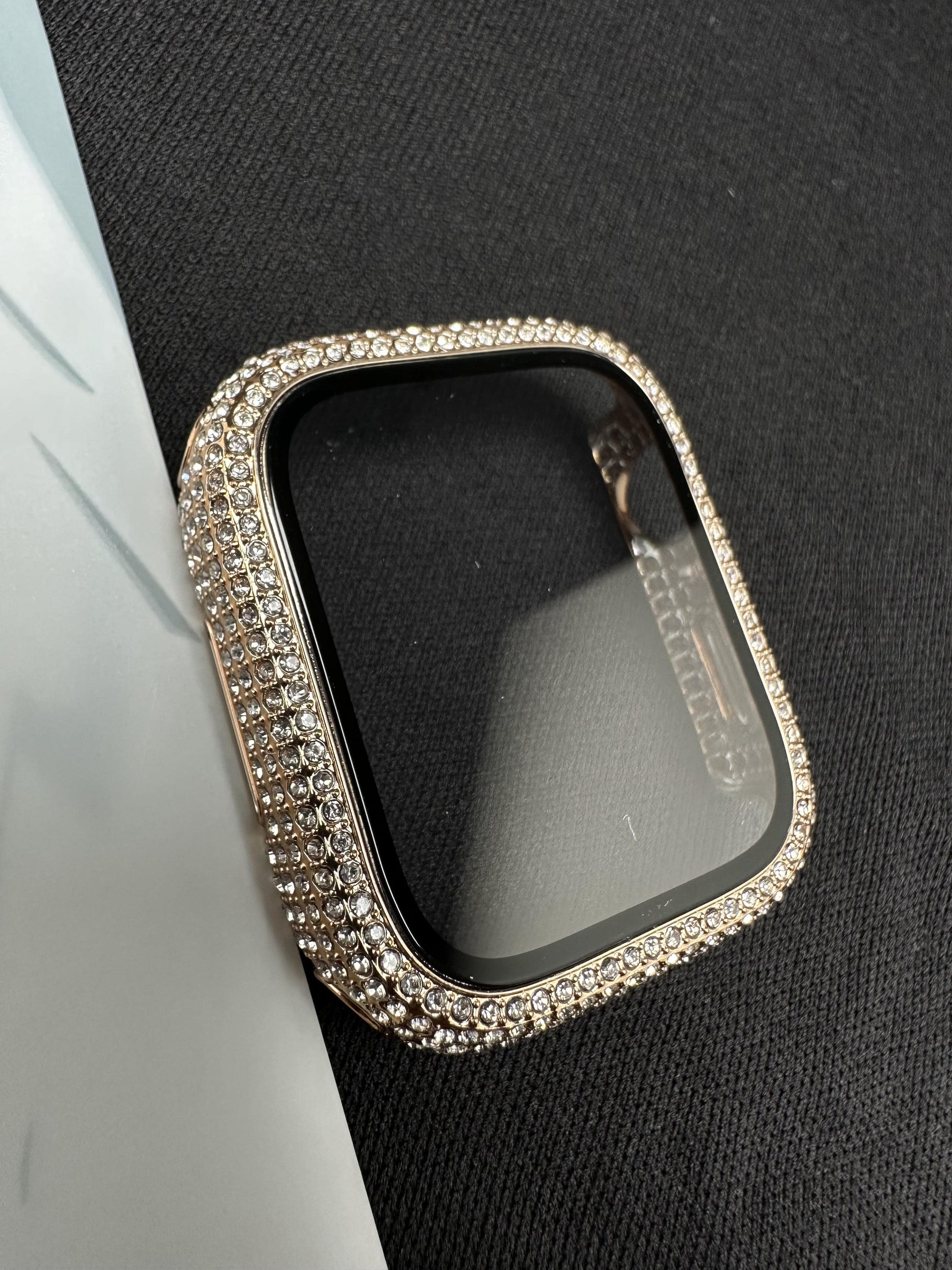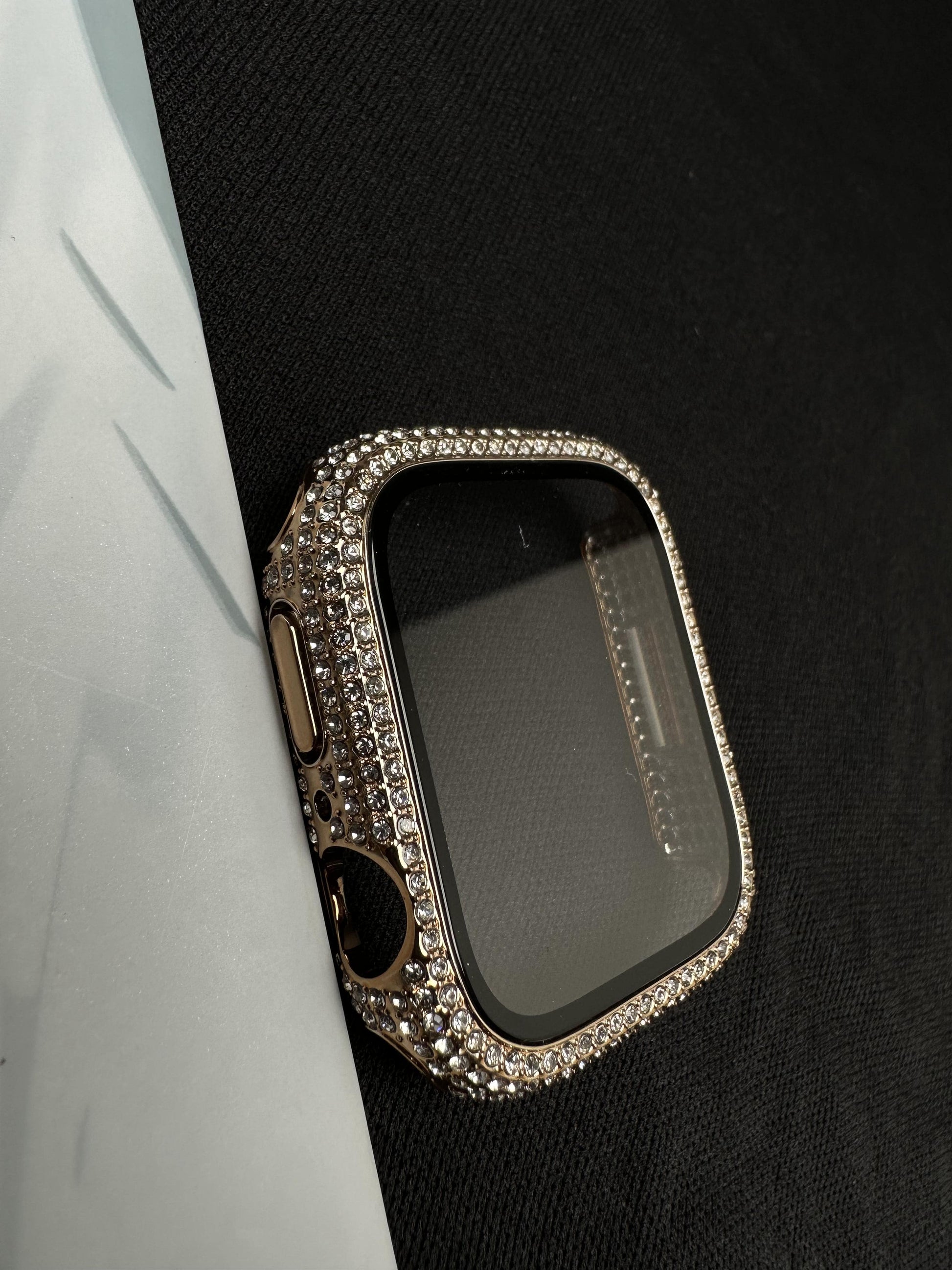 - Full Diamond Apple Watch Case, Gold iWatch Bumper Cover with Film, iWatch Protective Case, Series 3 4 5 6 7 8 SE SE 2