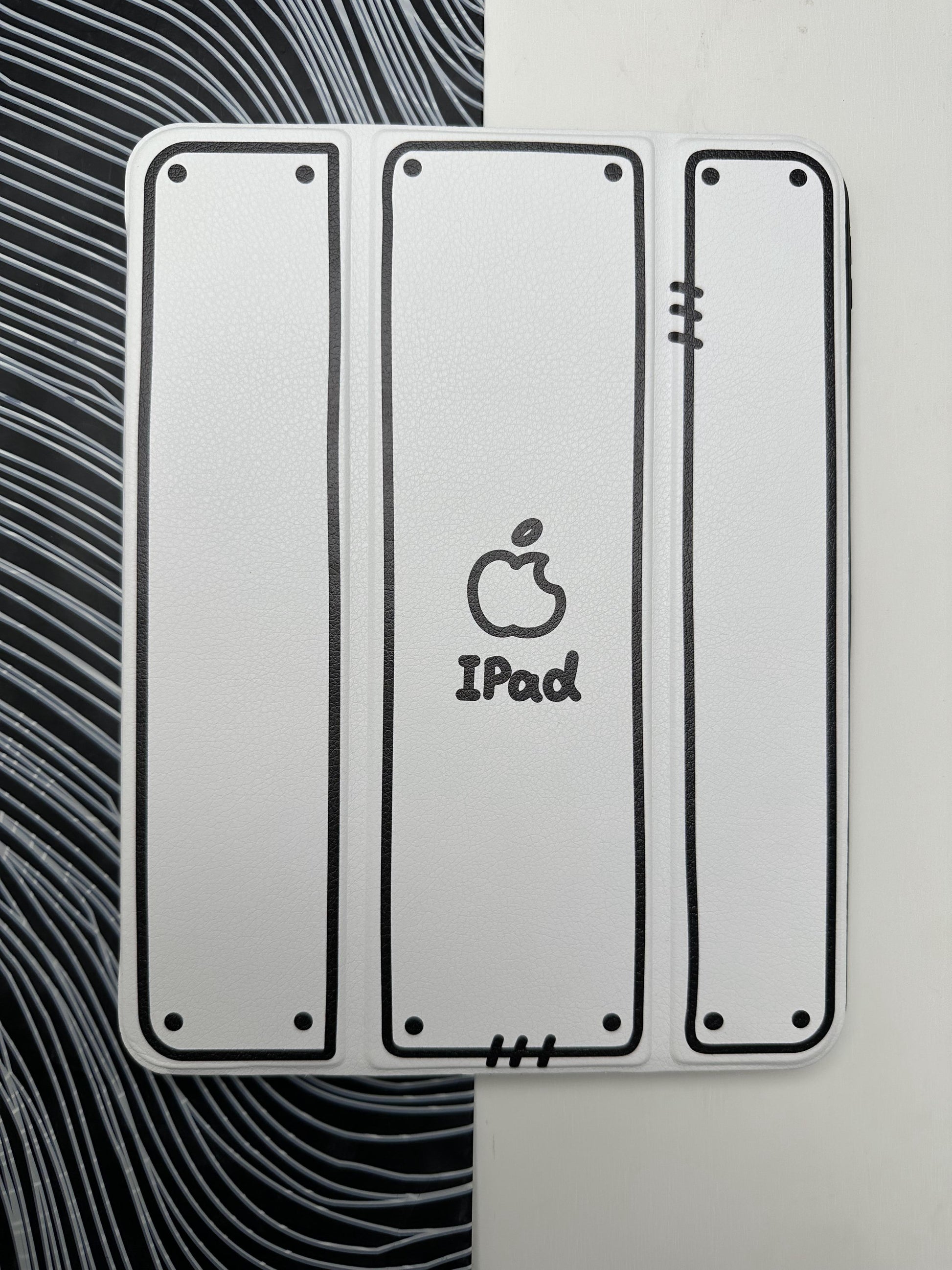 White Leather Dotted Line Case With Stand for iPad